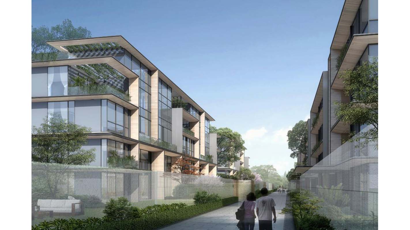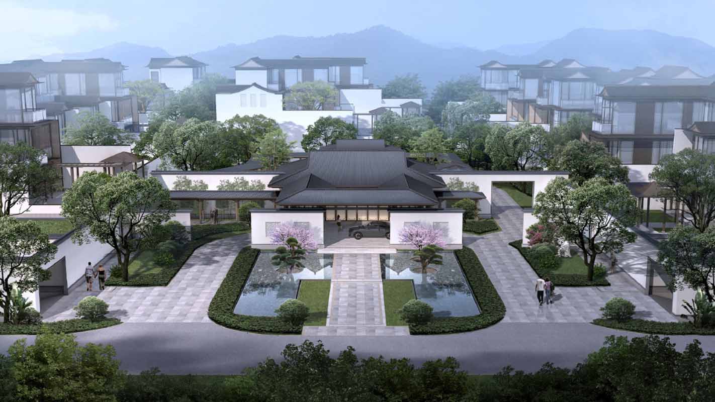 根据基地景观资源、山地地形关系的不同特点,规划通过对地形地势的梳理,景观资源的组织,住宅布局总体上根据地势分成五大片区,北侧布置330方低层新中式和550方低层传统中式住宅组团,东侧和东南侧为220方现代中式别墅住宅组团,西北侧和中间为190方新中式合院住宅组团,西南侧为200方户型现代风格四层叠墅住宅组团,形成相对独立又相互联系的多个不同风格的住宅组团。