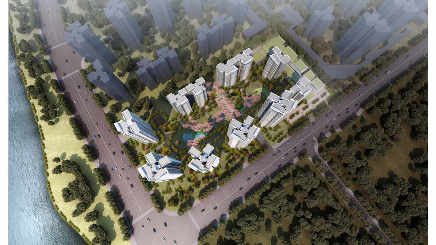 小区由11栋高层住宅楼及1栋配套商业楼组成,以市政道路及景观空间为轴线的骨架体系,围合出中心花园空间。景观节点均衡分布各区域中,保证景观资源的充分利用和分享,达到较高的“和谐行”和“均好性”。