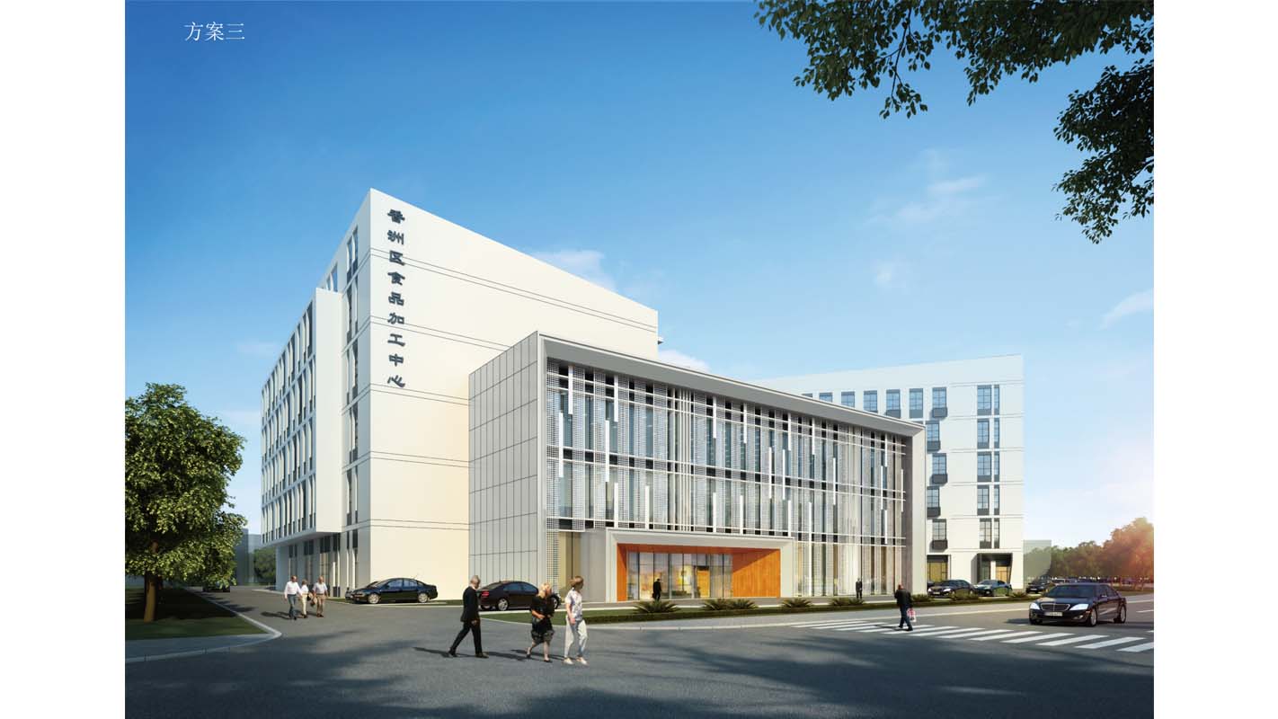 香洲区食品加工中心建筑外立面采用现代建筑风格,参考德国标准卫生管理与厂房规划原则,是珠海首个食品集中加工观光综合示范区。所有生产车间按照“生产企业”“食品小作坊”的要求标准来设计施工,功能结构合理,生熟分区,人流、物流动线划分明确。