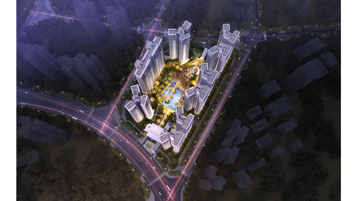 本项目总体规划力求通过合理高效的规划布局,体现以人为本的设计理念。设计中结合地块形状和周边环境,注重与周边城市环境整体协调呼应,总体上将高层住宅顺应场地布置,塑造一个通畅通风的整体和谐住区形象。