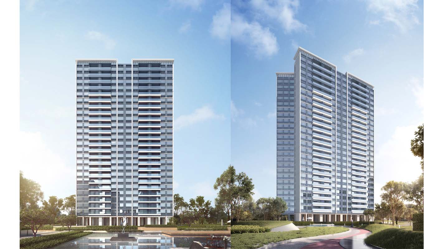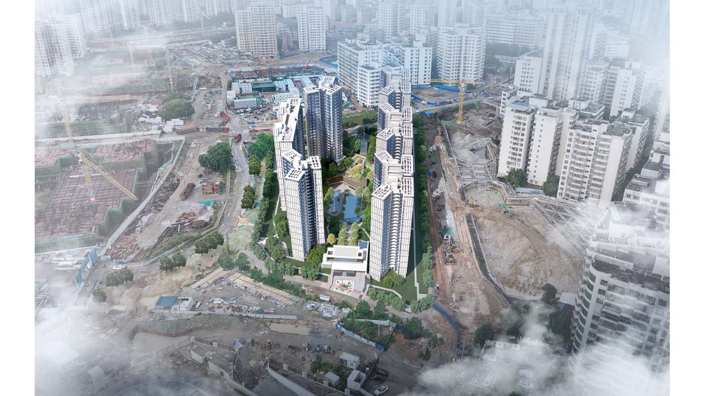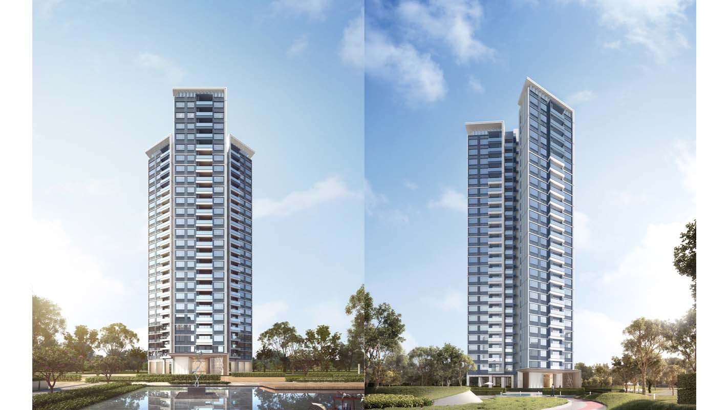 本项目在空间处理上形成一个半围合的中心景观大花园,打造层次丰富,移步换景的空间效果。高层住宅楼的立面处理手法,采用现代的高级灰白对比,虚实对比的处理手法,立面风格简洁干净,品质典雅。