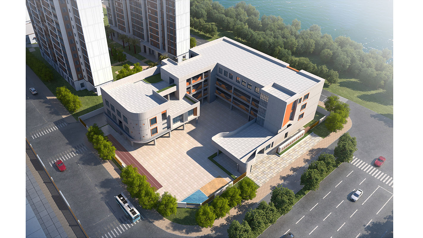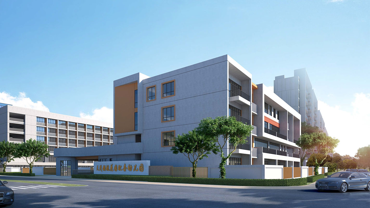 本项目结合周边规划道路关系,将小学建筑设于用地西侧,运动场设于东侧,靠近住宅用地,降低高层住宅对小学的压抑感,打造优质的学习环境。