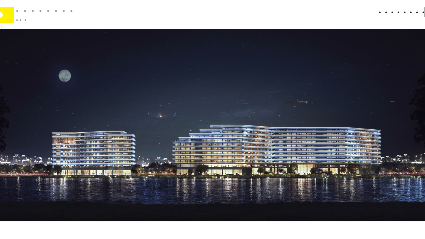 两个建筑之间通过折线设计,形成了连续的沿河景观面,与宴会厅形体一起,整体形成了“聚宝盆”的空间意向,同时宴会厅顶部造型设置了圆弧形,也呈现出“二龙戏珠”的空间寓意。
