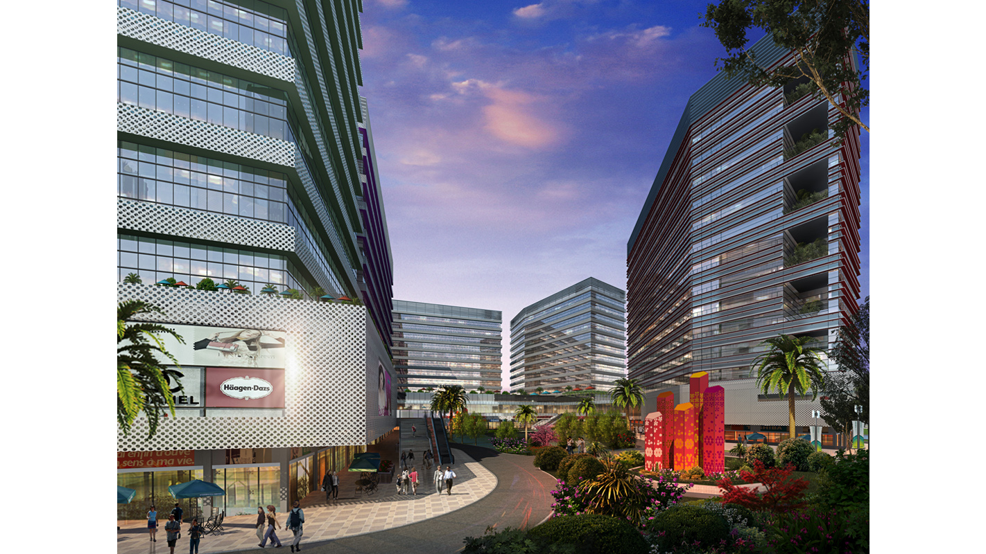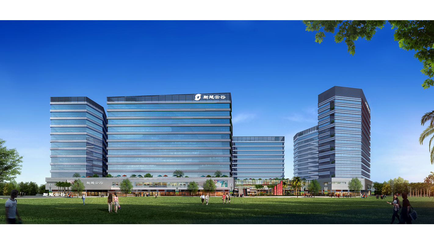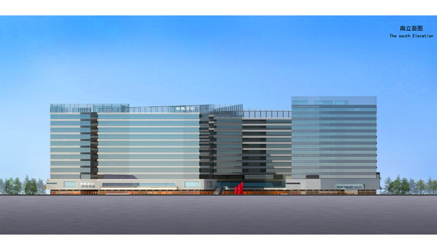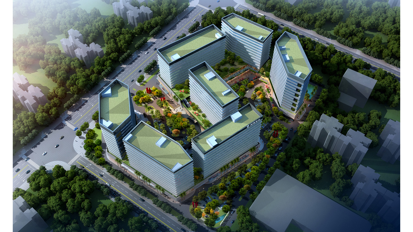 建筑总体分为七栋,各栋之间通过裙房连为整体,规划布局成“S”形,形成两个半围合的庭院及多个城市共享空间。本方案立面造型力求体现城市特色与国际潮流,以个性、大气的处理手法,创造出挺拔、洒脱的现代风格建筑。为强化项目的现代感与视觉吸引力,办公及裙房采用大面积玻璃幕墙的设计形式,体现建筑与时俱进的姿态;酒店选用米黄色石材,营造一种宾至如归的感觉,裙房部分通过简洁现代的设计手法,使厚重的石材与现代的玻璃幕墙完美结合在一起。