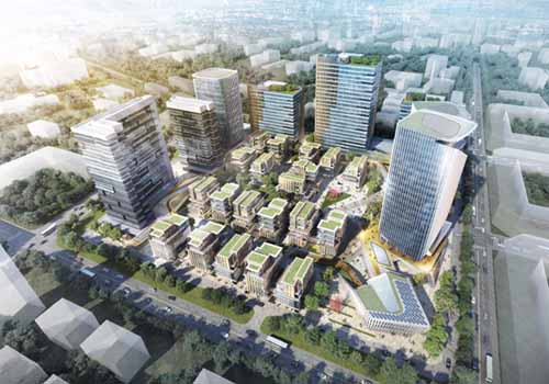 本项目采用融合聚变的理念,在建筑上由一个遮挡风雨的架空公共空间来表现,以U形串联所有主要建筑物。