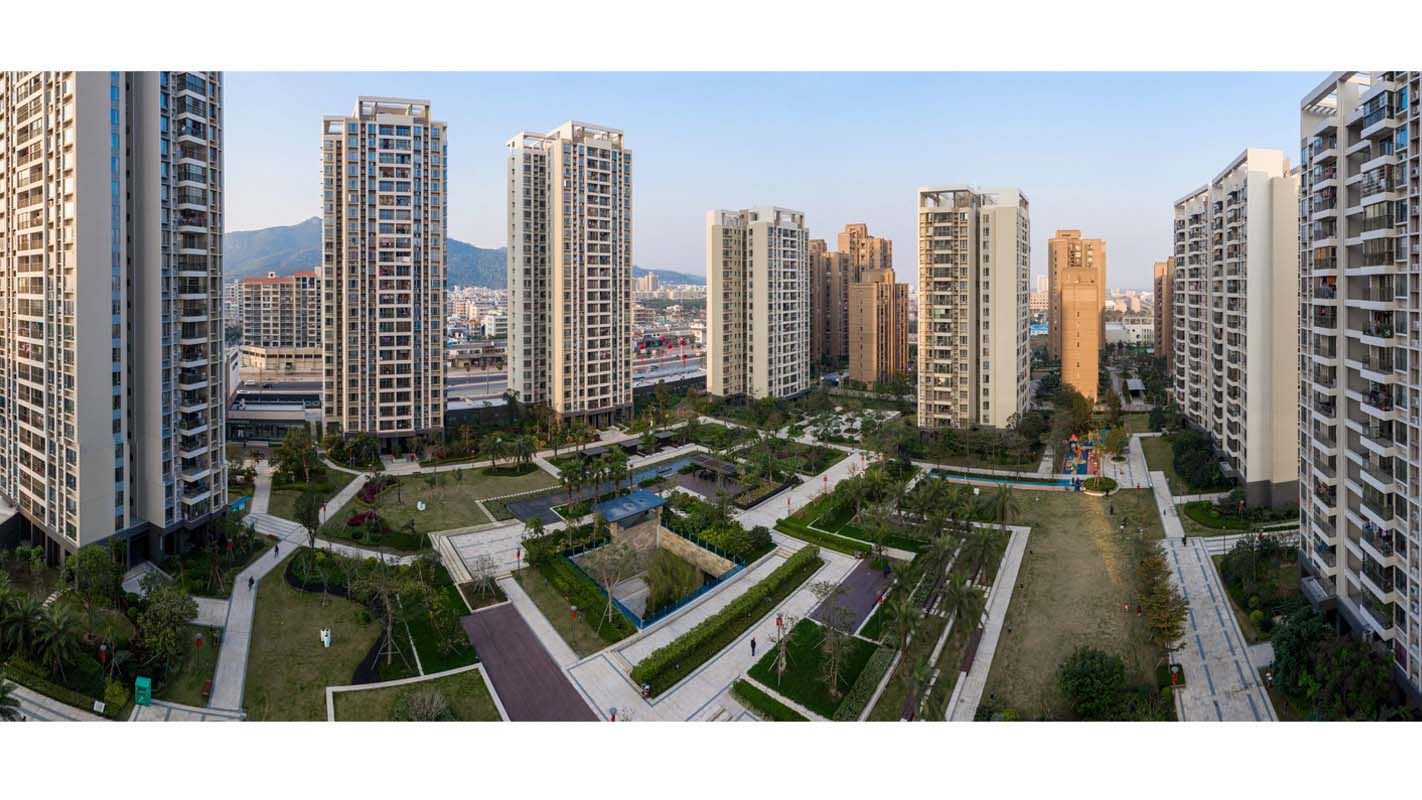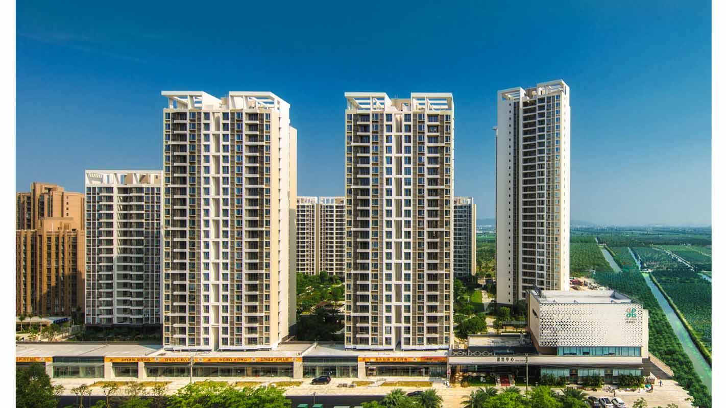 平沙九号一期项目位于珠海市平沙镇升平大道南侧、关平一街东侧,用地面积39131.47㎡,总建筑面积为103727.38㎡,主要由10个单元的高层住宅和沿街商业围合而成。