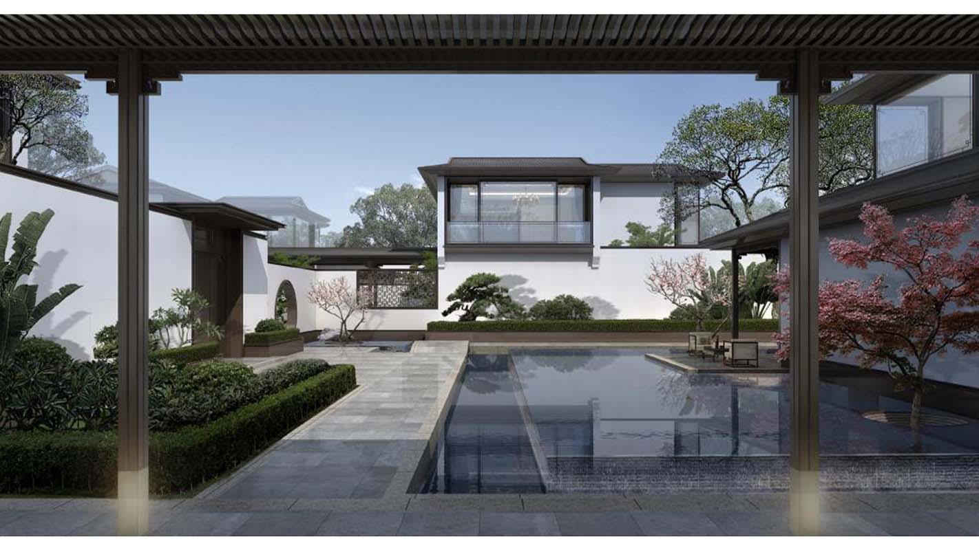 根据基地景观资源、山地地形关系的不同特点,规划通过对地形地势的梳理,景观资源的组织,住宅布局总体上根据地势分成五大片区,北侧布置330方低层新中式和550方低层传统中式住宅组团,东侧和东南侧为220方现代中式别墅住宅组团,西北侧和中间为190方新中式合院住宅组团,西南侧为200方户型现代风格四层叠墅住宅组团,形成相对独立又相互联系的多个不同风格的住宅组团。