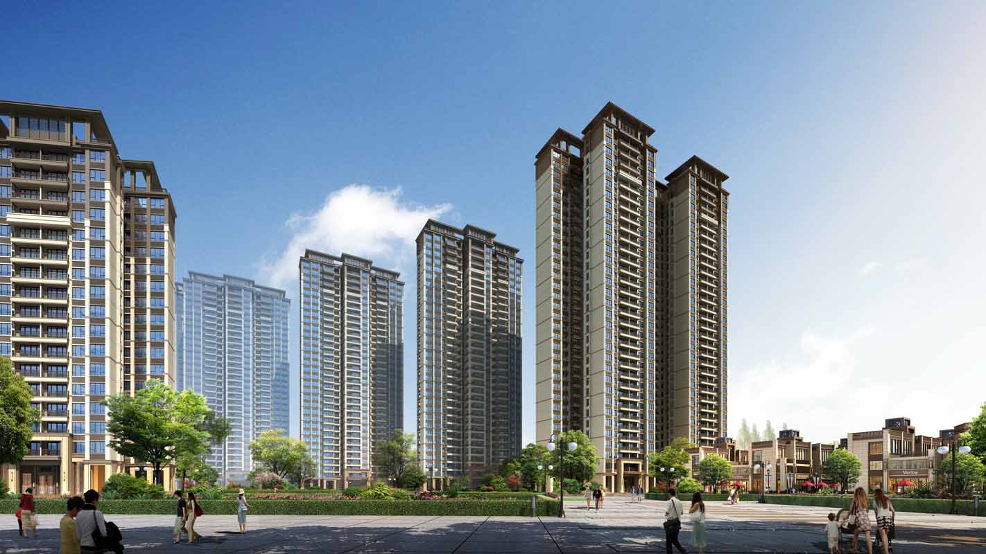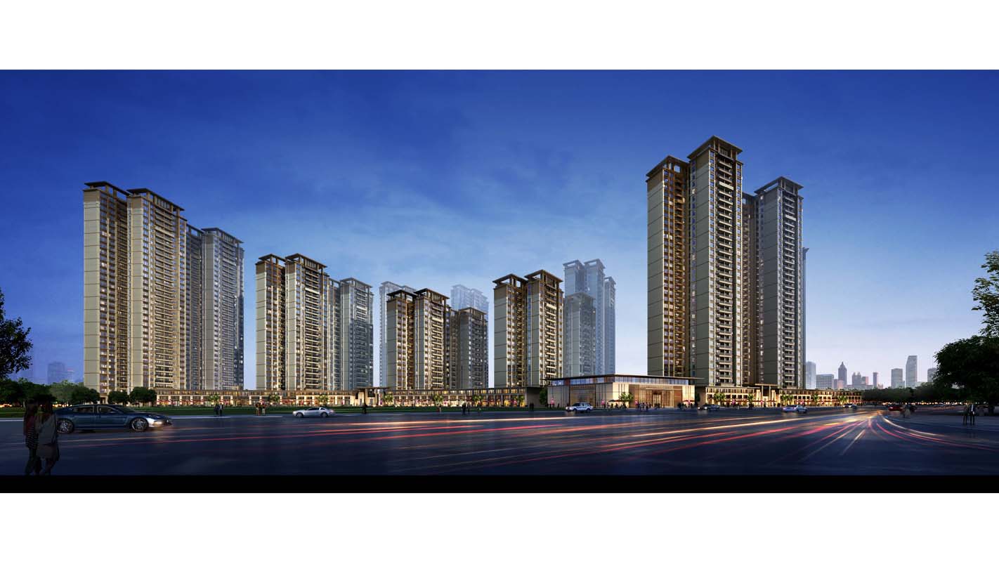 沿用地西侧城市广场和南侧城市道路设置临街商业街铺,沿用地东侧设置风情商业街,形成良好的商业氛围。高层住宅和公寓沿用地周围形成围合静谧的内院,内部开阔的园林东西延绵、南北贯通。住宅底层商业群房以外部分设为架空公共活动空间,并设物业服务用房和其他配套公共服务设施,以形成优良的居住环境。