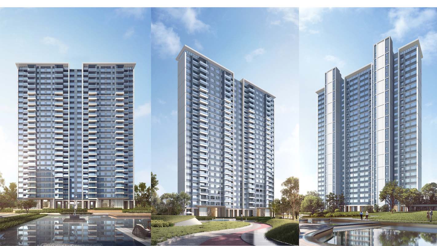 本项目在空间处理上形成一个半围合的中心景观大花园,打造层次丰富,移步换景的空间效果。高层住宅楼的立面处理手法,采用现代的高级灰白对比,虚实对比的处理手法,立面风格简洁干净,品质典雅。