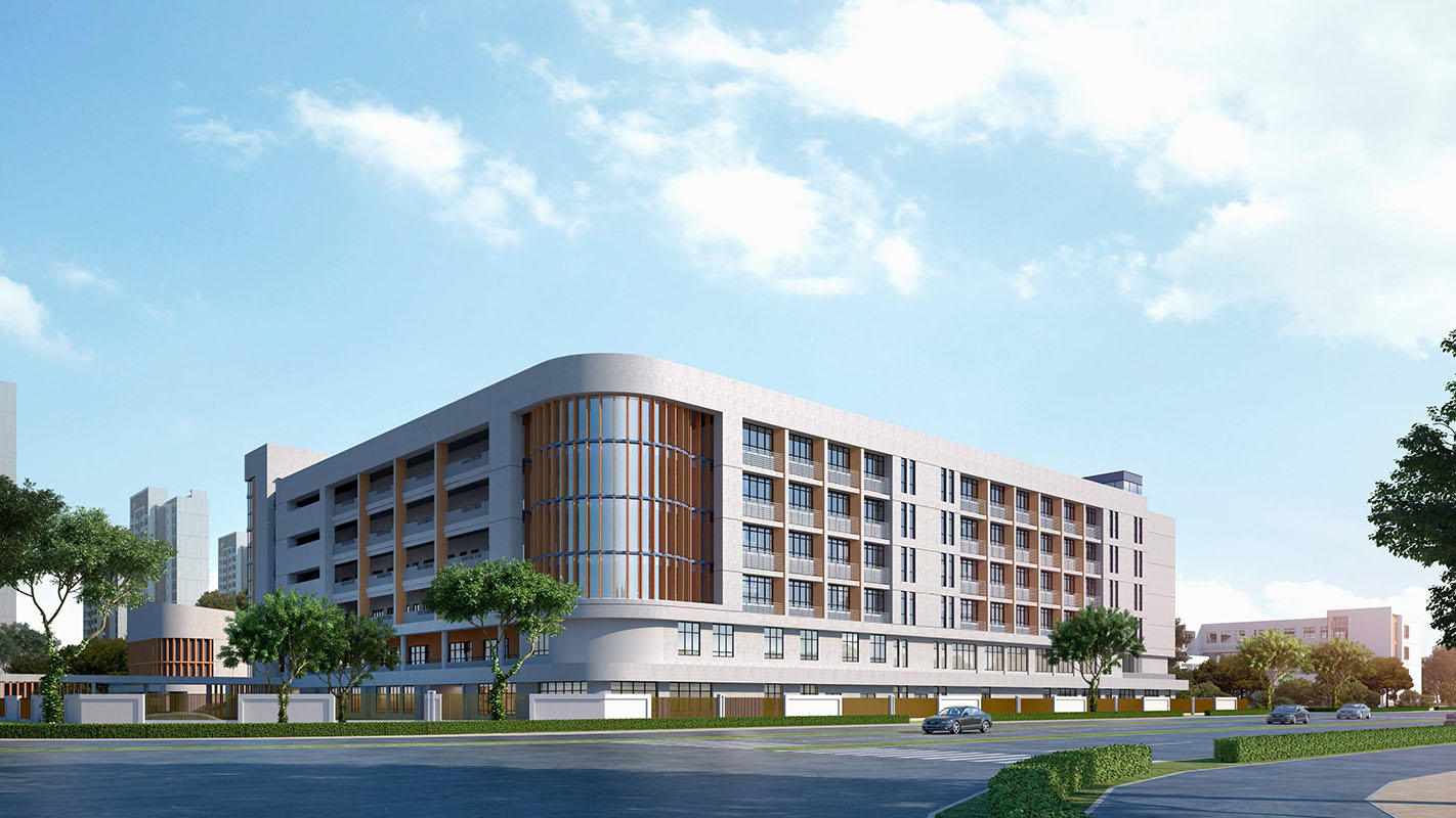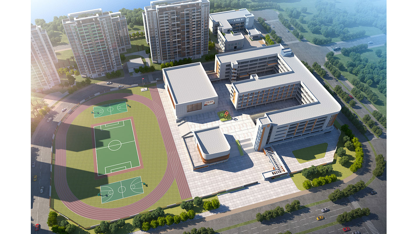 本项目结合周边规划道路关系,将小学建筑设于用地西侧,运动场设于东侧,靠近住宅用地,降低高层住宅对小学的压抑感,打造优质的学习环境。